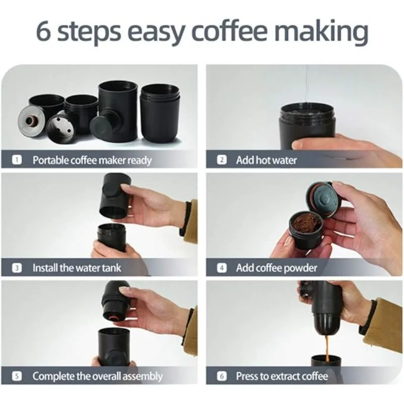 ماكينة القهوة اليدوية المحمولة مصممة لعشّاق القهوة اللي ما بحبوا يتنازلوا عن المذاق، حتى أثناء السفر أو الرحلات الخارجية.